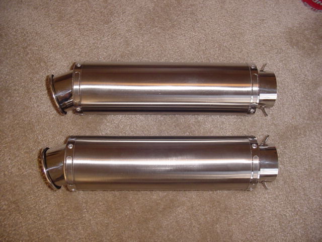 | low mount slip-ons with stainless GP cans |